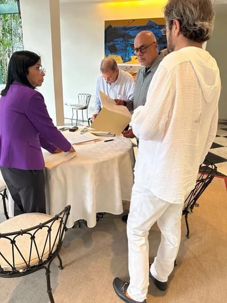 Jorge Rodríguez y Delcy Rodríguez obligan a González Urrutia a firmar el reconocimiento de la la victoria de Nicolás Maduro
