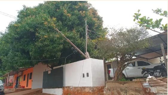 En el barrio San Vicente de Carapeguá, un árbol derribado por el viento provocó la caída de cuatro columnas de la Administración Nacional de Electricidad (ANDE), afectando las líneas de extensión de algunos vecinos. Hasta el momento, esa parte del barrio sigue sin energía eléctrica, a pesar de que en otras zonas ya se ha restablecido el servicio.