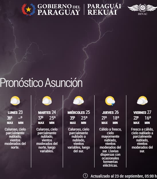 En cuanto a las lluvias, la probabilidad es baja para el inicio de la semana. Sin embargo, a partir del miércoles, un incremento en las posibilidades de precipitaciones podría traer alivio, especialmente en el sur de la Región Oriental.