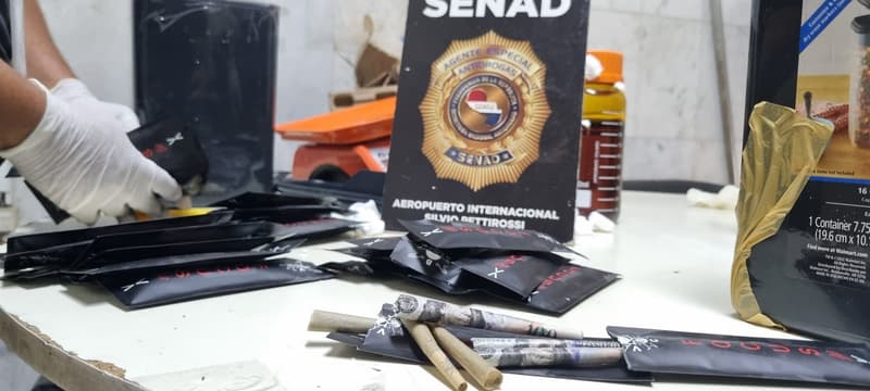 La Secretaría Nacional Antidrogas (Senad) incautó este lunes cuatro encomiendas con marihuana vip en el Aeropuerto Silvio Pettirossi, en Luque. Los paquetes, que llegaron desde Estados Unidos, contenían la droga escondida en objetos cotidianos como impresoras, loncheras y juegos de mesa.