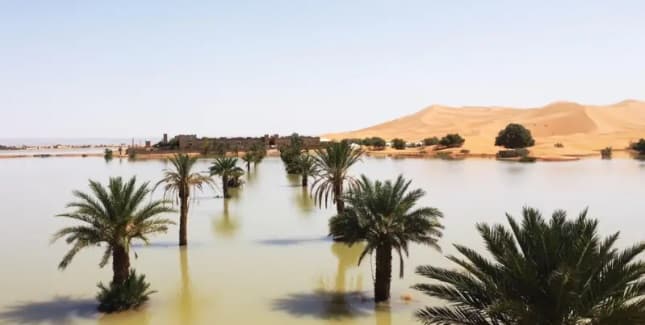 Lluvias históricas en el Sahara provocan inundaciones en Marruecos, dejando imágenes inusuales de un desierto convertido en un lago temporal.
