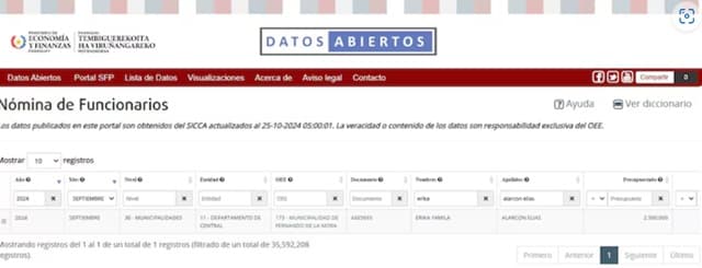 Alarcón Elías, quien hasta septiembre figuraba como funcionaria de la Municipalidad de Fernando de la Mora con un salario de G. 2.500.000, pasó a formar parte de la plantilla de Senadores, pese a no haber demostrado mérito en el concurso público realizado por la Cámara Baja. Este ingreso, considerado por “la ventana”, pone en cuestionamiento los procedimientos de contratación en el Congreso Nacional y plantea serias dudas sobre la transparencia en la asignación de estos cargos públicos.