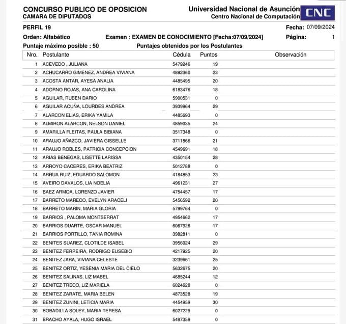 Erika Yamila Alarcón Elias, una nutricionista que obtuvo una calificación de cero puntos en el reciente concurso de oposición en la Cámara de Diputados, ha sido contratada por la Cámara de Senadores. Este nuevo puesto, al que accedió sin pasar por los requisitos de un concurso público, le asegura un salario de G. 5.000.000. La información sobre este contrato salió a la luz tras ser revelada por ABC Color, lo que desató críticas hacia la administración del presidente del Senado, Basilio “Bachi” Núñez, del partido cartista.