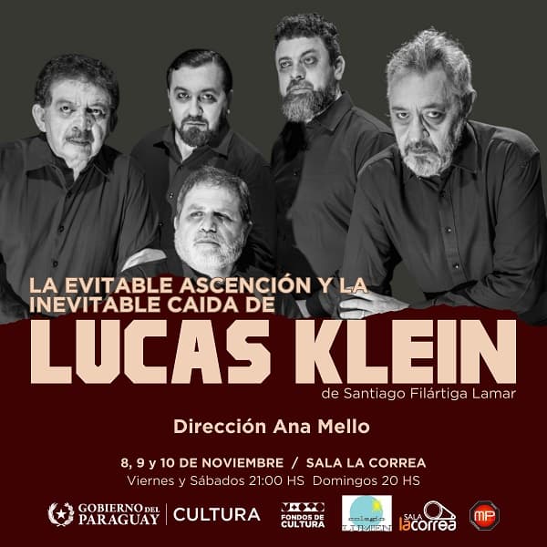 “La evitable ascensión (y la inevitable caída) de Lucas Klein” es una nueva propuesta teatral que llega a la Sala La Correa en Asunción, bajo la dirección de Ana Mello. La obra, escrita por Santiago Filártiga Lamar, aborda de manera satírica una serie de acontecimientos histórico-políticos que reflejan la lucha por el poder y exponen las debilidades de la democracia y las instituciones en la sociedad actual.