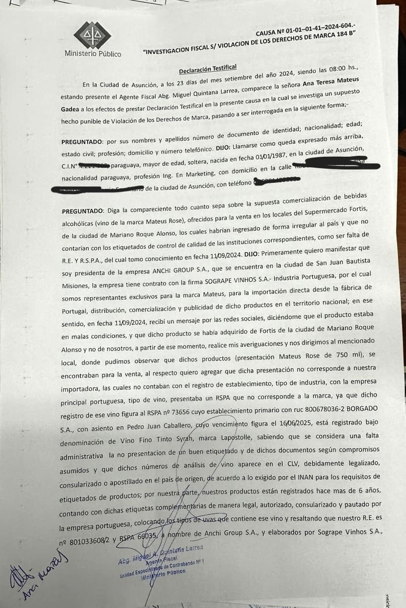 Tras un exhaustivo seguimiento, Anchi Group SA denunció el hallazgo de bebidas alcohólicas de contrabando en locales de la cadena Fortis, en Asunción y MRA. Estos productos, que incluyen marcas como Mateus Rosé El Original, Mateus Rosé Blanco y Silk 8 Spice, no cuentan con los registros sanitarios necesarios, lo que representa un riesgo para los consumidores.