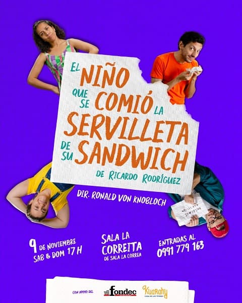 La obra de teatro “El niño que se comió la servilleta de su sandwich”, una producción con dirección de Ronald von Knobloch y texto del dramaturgo mexicano Ricardo Rodríguez, se estrena este 9 de noviembre en la Sala La Correa, en Asunción. La pieza aborda, desde una óptica honesta y conmovedora, los desafíos que enfrenta la infancia.