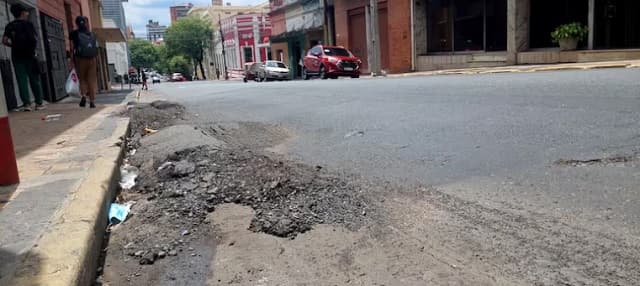 El estado de las calles es alarmante. La calle Cerro Corá, una de las arterias principales, está llena de baches y deformaciones, especialmente en áreas de paradas de buses. Los pasajeros deben sortear estos obstáculos en un trayecto complicado por el asfalto destruido y cordones desmoronados. Esta situación se repite en varias calles del centro histórico, donde la falta de mantenimiento pone en riesgo la seguridad de peatones y conductores.