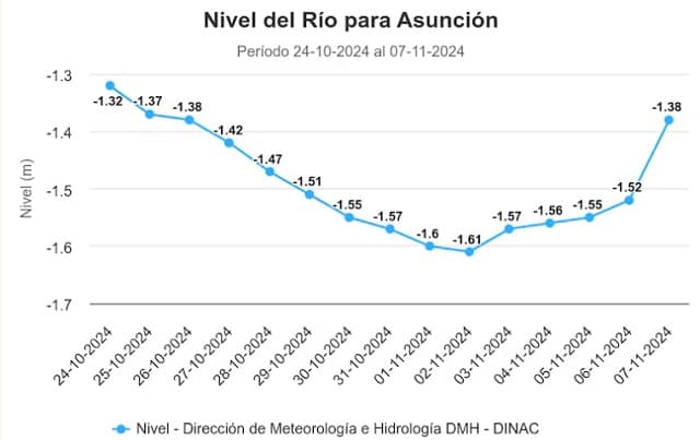 Luis María Jara, jefe del Departamento de Navegación e Hidrografía de la Comisión Mixta Paraguayo-Argentina del Río Paraná (COMIP), señaló a finales de octubre que se observa una tendencia positiva en la cuenca alta del río Paraguay. Sin embargo, aclaró que los efectos de este incremento de caudal en la cuenca media, que abarca principalmente territorio paraguayo, podrían manifestarse de manera efectiva recién dentro de unos meses.