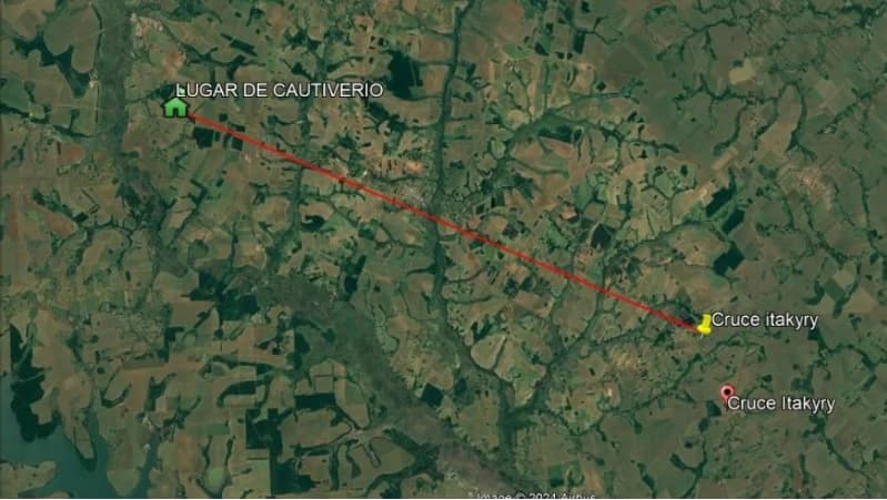 Localización entre cruce Itakyry con el lugar del secuestro.