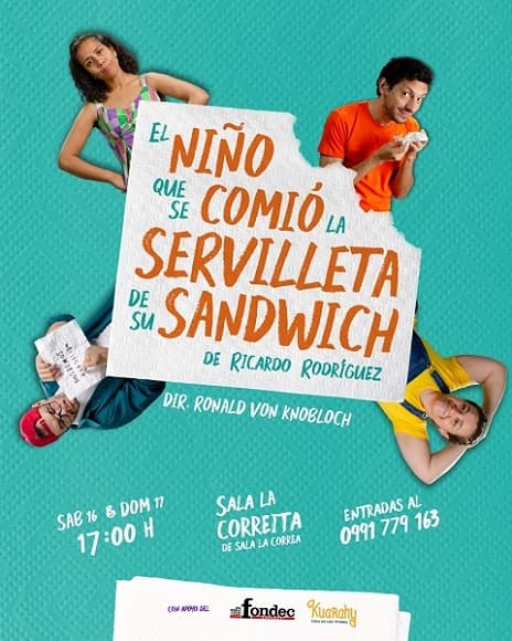 La obra teatral “El Niño que se Comió la Servilleta de su Sandwich” continúa en cartelera con dos últimas funciones en la Sala La Correa. Bajo la dirección de Ronald von Knobloch y con la dramaturgia del mexicano Ricardo Rodríguez, esta pieza explora temas actuales y significativos como el bullying escolar, la resiliencia y el poder de la imaginación en los niños.