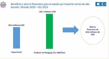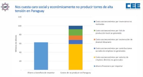 Un informe del Centro de Industriales Metalúrgicos (CIME), en colaboración con la Unión Industrial Paraguaya (UIP), reveló que Paraguay perdió aproximadamente USD 102 millones entre 2010 y 2023 al optar por importar torres de alta tensión en lugar de fabricarlas localmente. Este costo incluye pérdidas en salarios, impuestos no recaudados e inversiones no realizadas, afectando significativamente a la economía nacional.