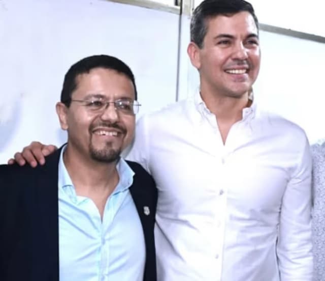 Imagen ilustrativa: el concejal colorado Miguel Sosa (izq) con el presidente de la República, Santiago Peña.