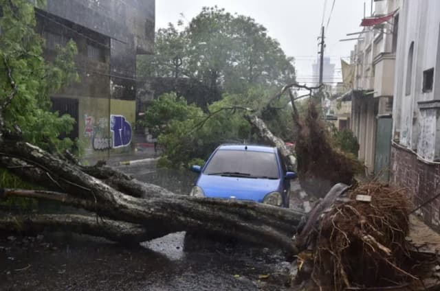 Fuertes vientos derriban árboles en Asunción. Un auto se salvó milagrosamente entre dos caídas. Vecinos piden acciones preventivas urgentes.