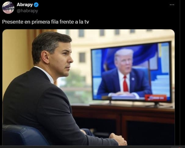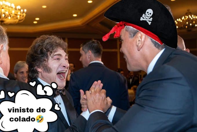 Entre los memes que generaron más reacciones destacó una imagen editada de Javier Milei, presidente de Argentina, junto a Santiago Peña. La foto recreaba un momento icónico con un toque irónico, insinuando que el mandatario paraguayo no fue invitado oficialmente y que “se coló” en el evento.