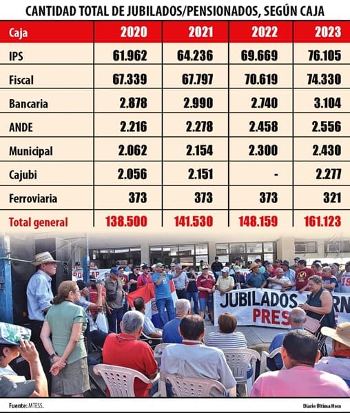 El sistema previsional paraguayo cuenta con 161.123 jubilados, siendo los de Cajubi los mejor remunerados con un promedio de G. 22 millones mensuales.