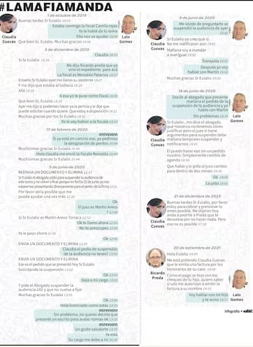 La cronología de los mensajes revela una serie de intervenciones del diputado Gomes para influir en el proceso judicial. Entre estas gestiones destaca el nombramiento de la fiscal Reinalda Palacios y la coordinación con el juez Martín Areco Torraca para la suspensión de audiencias. En uno de los mensajes más reveladores, Gomes se jacta de su influencia sobre el juez, afirmando “su cargo me debe a mí”.