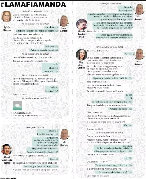 Chats filtrados exponen presiones de Lalo Gomes a fiscales y jueces. Se investiga el rol de su hermana en decisiones judiciales clave.