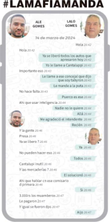 Mensajes entre Lalo Gomes y su hijo Alexandre evidencian intervención directa para liberar mercaderías y personas retenidas en operativo fronterizo.