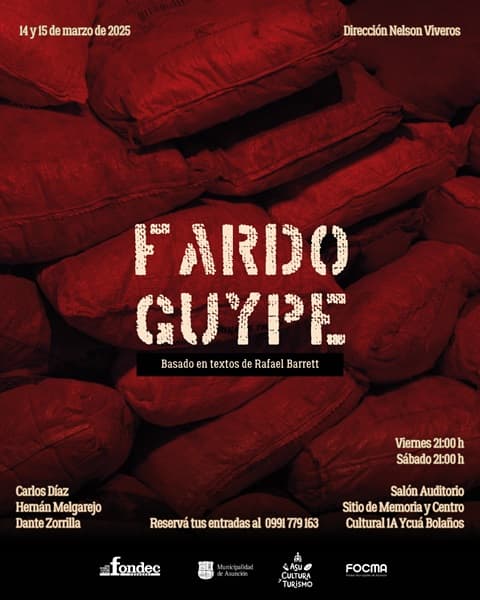 La potente obra teatral “Fardo Guype” (Bajo el fardo) regresa a los escenarios paraguayos para retratar la cruda realidad de los trabajadores de los yerbales a principios del siglo XX. Basada en textos del célebre escritor anarquista Rafael Barrett, la pieza se presentará el viernes 14 y sábado 15 de marzo en el Salón Auditorio del Sitio de Memoria y Centro Cultural 1A Ycuá Bolaños.