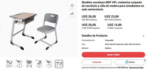 Los documentos presentados por Kamamya SA ante la Dirección Nacional de Ingresos Tributarios (DNIT) para el despacho aduanero confirman que la empresa pagó 15 dólares por cada set de pupitres importados. Este monto coincide con las cotizaciones encontradas en portales internacionales de venta mayorista, donde los mismos productos se ofertan a 15 dólares para pedidos superiores a 10.000 unidades. Sin embargo, Itaipú Binacional adjudicó a esta empresa entre G. 738.000 y G. 765.000 (entre USD 94 y 97) por cada set, dependiendo del lote y las medidas, ya que incluyen mobiliario para Educación Inicial y Educación Escolar Básica en sus tres ciclos.