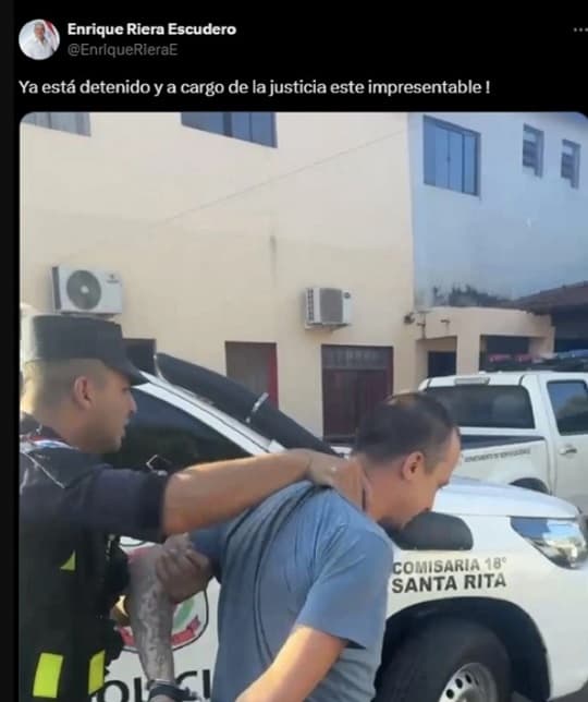 La confusión ministerial quedó al descubierto cuando el comisario Humberto Galeano, jefe de la Comisaría 18ª de Santa Rita, tuvo que aclarar que la fotografía compartida por Riera correspondía, en realidad, a un ciudadano brasileño detenido el martes por un caso completamente diferente, relacionado con estafa y porte ilegal de armas.