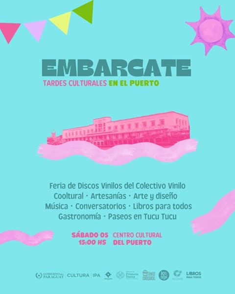 “Embarcate” es una actividad organizada por la Secretaría Nacional de Cultura, con el respaldo de la Oficina de la Primera Dama (OPD), el Instituto Paraguayo de Artesanía (IPA) y la Administración Nacional de Navegación y Puertos (ANNP). La articulación entre estas instituciones fortalece la política de acceso a la cultura como derecho ciudadano, promoviendo una participación activa y descentralizada.