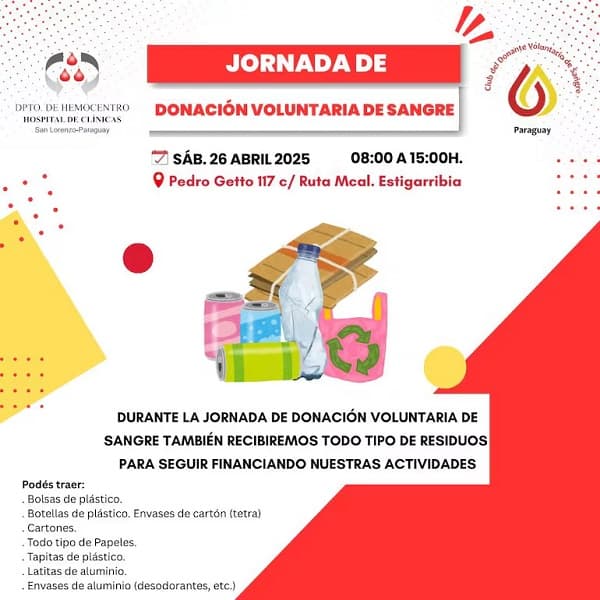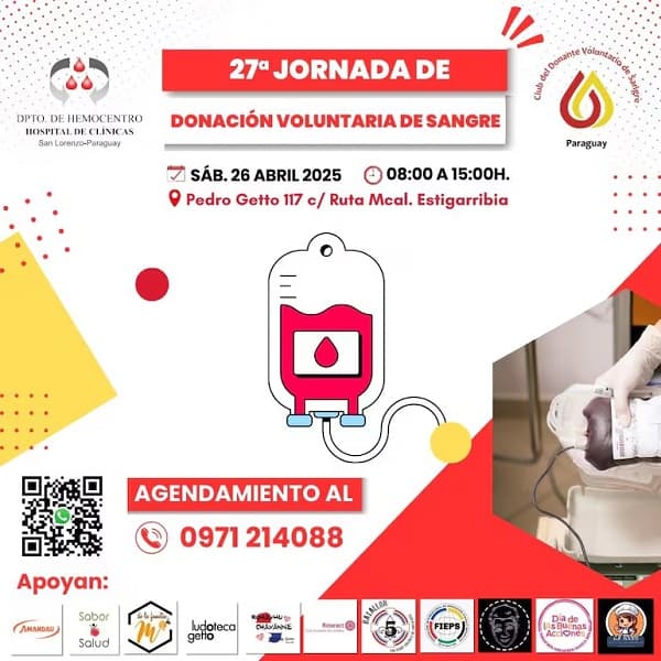 Desde hace más de una década, un grupo de voluntarios impulsa una acción solidaria esencial en Paraguay: la donación voluntaria de sangre. El Club del Donante Voluntario de Sangre del Paraguay nació en 2014 como una iniciativa ciudadana para enfrentar la escasez de unidades disponibles en hospitales públicos, en especial el Hospital de Clínicas, donde se articula cada jornada.