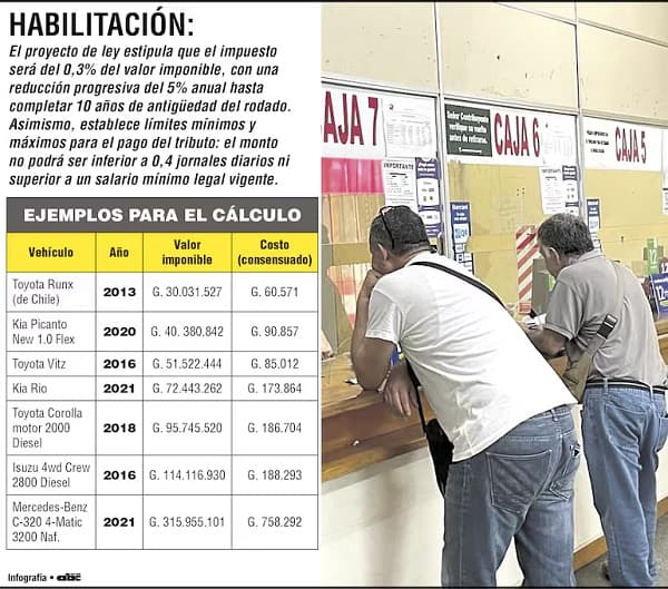 Unite a nuestro canal de WhatsAppEl esquema de costos propuesto por la ley define que una motocicleta de estreno pagará un jornal diario; si es usada, entre 0,5 y 0,8 jornales. En el caso de los automóviles, el monto va desde seis jornales para vehículos nuevos hasta dos para los más antiguos. Esta fórmula busca reflejar con mayor precisión el valor real del rodado y su impacto en la vía pública.