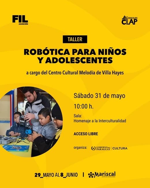- 10:00 - Robótica para niños y adolescentes (Centro Cultural Melodía de Villa Hayes) - Sala Homenaje a la Interculturalidad
