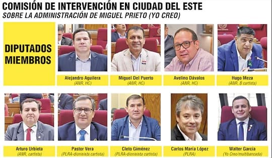La reunión está prevista para las 11:00 y es convocada por el diputado Alejandro Aguilera (ANR, HC), presidente de la comisión. El grupo analiza la solicitud impulsada por la Contraloría General de la República, que recomendó la intervención de la administración municipal liderada por Prieto, quien también es precandidato presidencial por el movimiento “Yo Creo”.