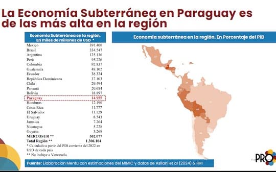 El dato es parte de un diagnóstico más amplio que revela que la economía subterránea, también conocida como economía “en negro”, representa el 35,1% del Producto Interno Bruto (PIB). Esta cifra equivale a más de USD 15.700 millones movilizados por fuera del sistema formal, un monto superior al total de reservas internacionales del país y que representa el 83% de la deuda pública paraguaya.