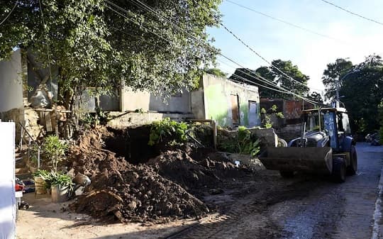 En el lugar se encontraban dos camiones tipo tumba con el logotipo de la municipalidad y una retroexcavadora. Arce, quien actualmente se desempeña como encargada de despacho de la Dirección de Acción Cultural, supervisaba los trabajos en persona. Consultada por el hecho, justificó la intervención alegando que solo se trataba del retiro de escombros a causa de un derrumbe provocado por la última tormenta.
