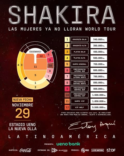 Shakira hace historia en Paraguay al agotar entradas y confirmar un segundo concierto consecutivo en La Nueva Olla, el 29 de noviembre. Entradas ya a la venta.