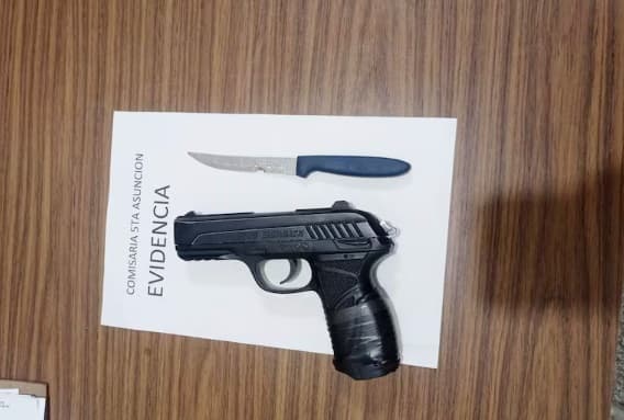 El detenido fue identificado como Julio Manuel Bell Cavallo, domiciliado en la zona de Punta Karapá. Portaba una réplica de pistola calibre 9 mm y un cuchillo de cocina al momento del hecho, ocurrido alrededor de las 22:00 horas.