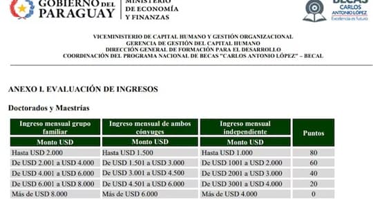 Según datos oficiales, obtuvo el máximo puntaje posible en el ítem de “evaluación de ingresos” del Programa de Becas Carlos Antonio López (Becal), reservado para postulantes con limitados recursos económicos.