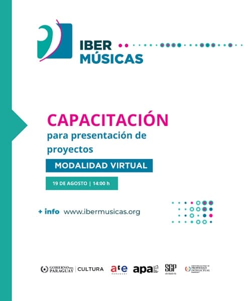 La Secretaría Nacional de Cultura anunció la realización de un taller virtual sobre las convocatorias del Programa Ibermúsicas, dirigido a músicos, gestores culturales y todas las personas interesadas en postular proyectos artísticos. El encuentro se llevará a cabo el martes 19 de agosto a partir de las 14:00, con acceso libre y gratuito mediante inscripción previa.