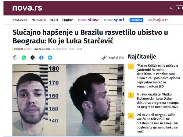 El serbio había estado preso en Brasil hasta 2023, donde fue liberado pese a que ya pesaba sobre él una orden de extradición solicitada por Serbia, país que lo acusa de asesinar al mafioso Goran Radoman en 2015. El homicidio se produjo tras la pérdida de una carga de 200 kilos de cocaína y la disputa por el control del Clan de Kotor, una de las estructuras criminales más temidas de la región balcánica.