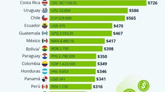 En 2025, varias naciones ya aplicaron incrementos relevantes. México elevó un 12% su mínimo diario, El Salvador aplicó la misma suba en comercio e industria, mientras que Colombia fijó un 9,5% de aumento. Perú, Uruguay, Ecuador, Bolivia y Argentina también implementaron ajustes, aunque con porcentajes distintos.