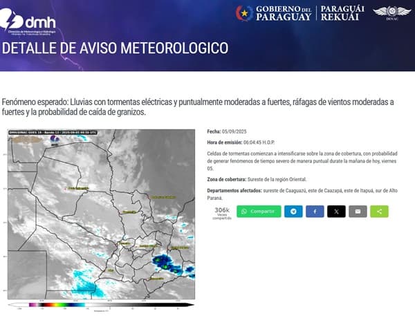 Los departamentos de Caaguazú, Caazapá, Itapúa y la región sur de Alto Paraná concentran el mayor riesgo meteorológico. La Meteorología no descarta la formación de tiempo severo en el sureste de la Región Oriental. Los residentes de estas zonas deben mantenerse informados sobre la evolución de las condiciones atmosféricas.