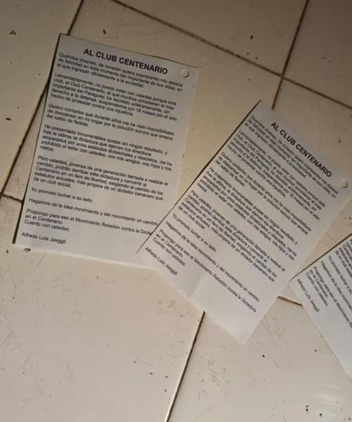 Panfletos arrojados por Jeggli en el debut del Centenario