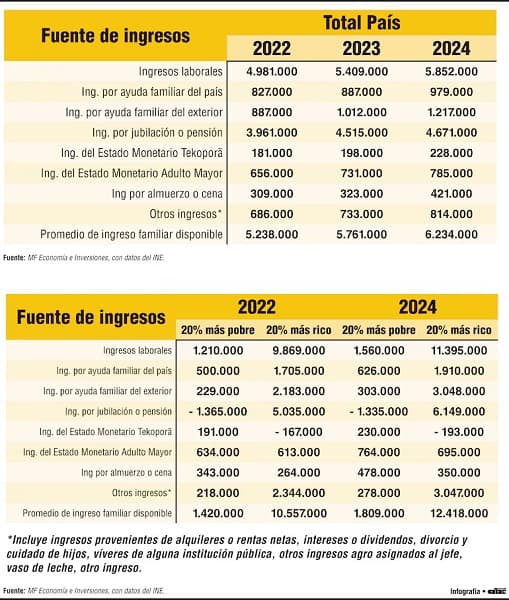 Unite a nuestro canal de WhatsappEn el otro extremo, el 20% más rico alcanzó un ingreso de G. 12.418.000 en 2024, con un crecimiento de 17,6% respecto a 2022. El aumento absoluto fue de G. 1.861.000, casi cinco veces superior al del quintil más pobre. Los ingresos laborales y las jubilaciones constituyen la base sólida de este grupo, garantizando estabilidad y diversificación.