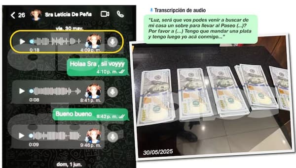 La exfuncionaria guardó mensajes y audios de diferentes periodos donde se escucha a la primera dama indicar sobres con dinero en efectivo para pagos y entregas. En uno de los chats se oye a Ocampos hablar de una persona que tenía que buscar una bolsa con plata. En otro audio le indicaba sobre otro pago a la misma persona, mencionando que el lunes Santi tenía que darle una plata para entregar en un sobre.