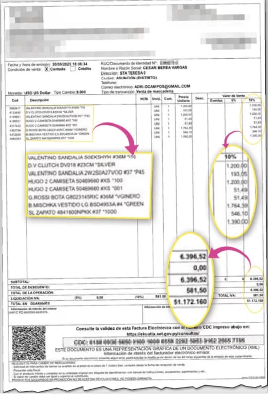 Las revelaciones sobre el manejo de fondos en Mburuvicha Róga abrieron un nuevo frente de cuestionamientos hacia la administración de Santiago Peña. La exfuncionaria Luz Maribel Candado aseguró que los sobres con dinero en efectivo entregados desde la residencia presidencial eran usados para realizar compras en shoppings y que las facturas se emitían a nombre de terceros vinculados a la familia presidencial.