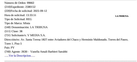 Según registros obtenidos por RDN, Ramos Colmán y Giménez Vera son oriundos de Misiones y de Ciudad del Este. En tanto, V Media SA figura con domicilio en la Avenida Santa Teresa 1827, en el edificio Torres del Paseo, donde también se encuentra la redacción de La Tribuna, medio adquirido por el Grupo Vázquez. Su presidenta, Raquel Vázquez Benítez, es hermana de Miguel Vázquez, directivo principal del conglomerado.