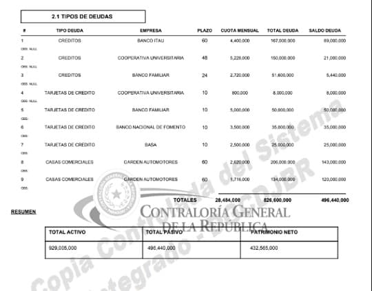 El dato más llamativo: el titular de Petropar aseguró tener dos millonarias cuentas a cobrar, una por G. 2.800 millones y otra por G. 700 millones. Un escenario que, sumado a su elevado nivel de endeudamiento, despierta sospechas sobre la consistencia de su patrimonio.