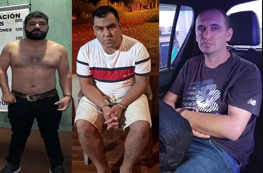 De izquierda a derecha, los detenidos: Antolín Algarín Domínguez (28), Diego Hernán Portillo Sugastti (31) y Hernán David Núñez Vera (40). Foto: Gentileza
