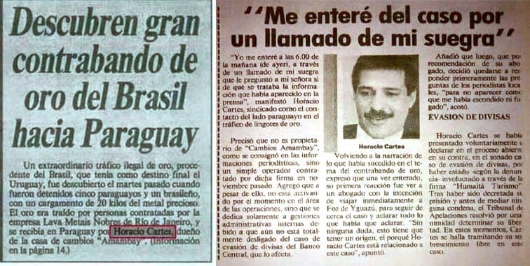 Como antecedente, se recuerda un caso registrado a inicios de los años 90, cuando ciudadanos brasileños fueron detenidos en Ciudad del Este con 20 kilos de oro de contrabando al intentar ingresar al país para luego dirigirse a Uruguay. En aquella ocasión fue involucrado Horacio Cartes, quien entonces actuaba como representante de Cambios Amambay. Este episodio se cita hoy como referencia de la utilización de Paraguay en rutas internacionales de oro.