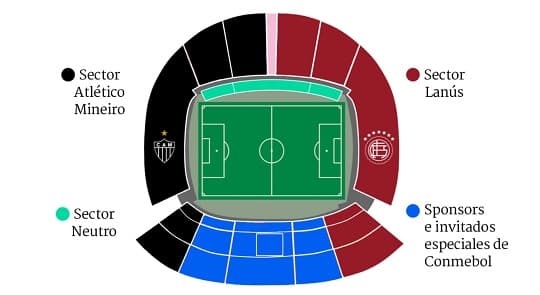 La distribución dentro del Defensores del Chaco seguirá criterios definidos por Conmebol. La parcialidad brasileña ocupará la Gradería Norte y parte de las Plateas Sur, mientras que Lanús utilizará la Gradería Sur y sectores asignados de Preferencias. Los espacios B, C y D estarán reservados para invitados y patrocinadores.