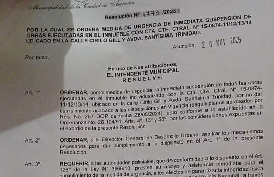 El intendente Luis Bello ordenó la suspensión inmediata de la obra ubicada sobre la avenida Santísima Trinidad y la revocación del permiso concedido. La medida se tomó después de recibir nuevas quejas de los residentes, reuniones inconclusas y una manifestación frente a la sede municipal.