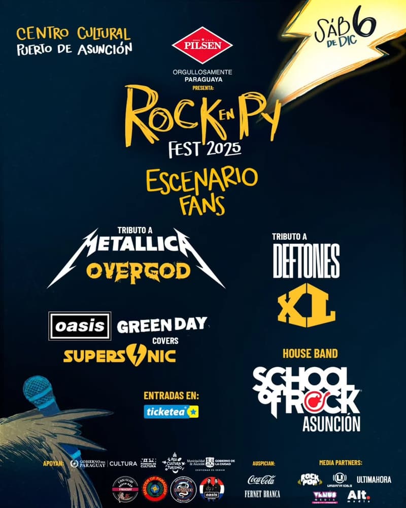 El público podrá disfrutar de dos escenarios: el Escenario RockenPy y el Escenario Fans, que funcionarán en simultáneo. Este formato permite alternar propuestas y mantener la música activa durante toda la jornada. El acceso al sector Generales será libre y gratuito, con entrada habilitada hasta completar el aforo previsto en el Centro Cultural Puerto de Asunción.